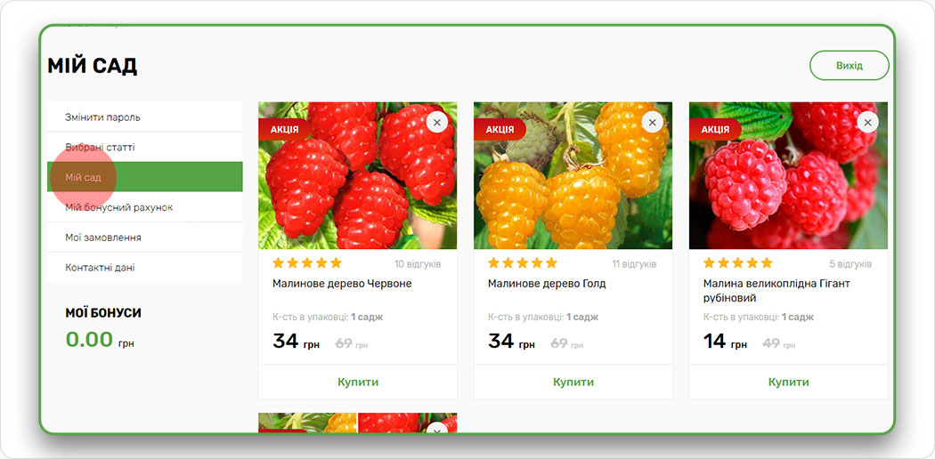 «Мой Сад» – это корзина ваших пожеланий, куда можно добавлять те товары, которые вы хотите, но пока не готовы купить.