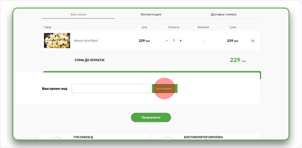 Введите промокод (если он у вас есть) в специально предназначенное для этого поле, нажмите на стрелку, и сумма заказа пересчитается.