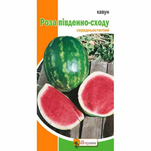 Арбуз Роза Юго-Востока - среднеранний, длинно-плетистый, засухоустойчивый сорт. Вегетационный период арбуза Роза Юго-Востока от всходов до сбора урожая составляет 75-80 дней. Плод шаровидный, светло-зеленый с широкими темно-зелеными полосами, весом от 2 до 5 кг. Мякоть у плодов карминно-красная с розовым оттенком, зернистая, нежная, очень сочная и сладкая. Характеризуется хорошей транспортабельностью. Лежкость средняя. Относительно устойчив к антракнозу и фузариозу. В нашем интернет-магазине только качественные семена и саженцы.
