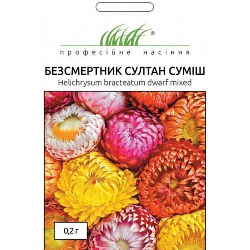 Бессмертник Султан, смесь окрасок — однолетнее травянистое растение, с мелкими, собранными в разноцветные соцветия, цветами. Бессмертник прекрасно переносит недостаток влаги и холод. Он часто используется при создании зимних букетов, поскольку цветет до самых заморозков.