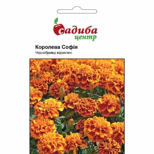Бархатцы Королева София - кустики раскидистые низкорослые, высотой до 30см. Цветки оранжево – красные с золотыми краями. Сеют в начале апреля. Цветение начинается уже в июне. Растения неприхотливые, быстрорастущие, свето и теплолюбивые, засухоустойчивые. Требуют питательных, хорошо увлажненных почв в первую половину лета. Хорошо смотрятся в групповых посадках, клумбах и рабатках.