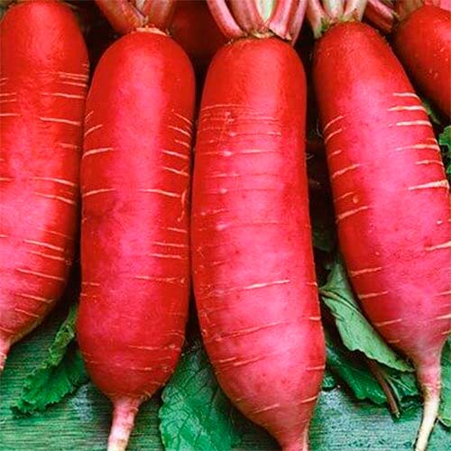 Дайкон китайский розовый – это однолетний корнеплод темно-малинового цвета. При качественном уходе он может достигать 300 – 500 г. Мякоть плода очень приятная на вкус – хрустящая и немного острая. Она, однозначно, добавит вашему блюду свежести, сочности и яркости. Сорт относится к среднеспелым, первый урожай вы соберете через 1,5-2 месяца. Добавьте азиатской изысканности в ваши блюда, приобретайте семена дайкона китайского розового!