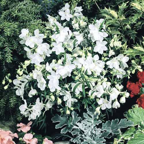 Дельфиниум крупноцветковый Саммер Стар – очень нежный сорт с большими белоснежными бутонами. Множественные ветвящиеся побеги достигают высоты 30 см и формируют пышные подушки. Цветение длится с начала июня до начала августа. Листва изящная, темно-изумрудная. Купить саженцы дельфиниума крупноцветкового Саммер Стар стоит для оформления пышных бордюров, монопосадок или нежных клумб.