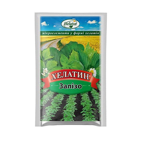 Удобрение на основе микроэлементов в форме хелатов. Когда растению не хватает железа, листья обесцвечиваются, приобретают салатовый окрас, проявляется хлороз. Сначала лист желтеет между жилками, а затем желтеет вся поверхность листа.