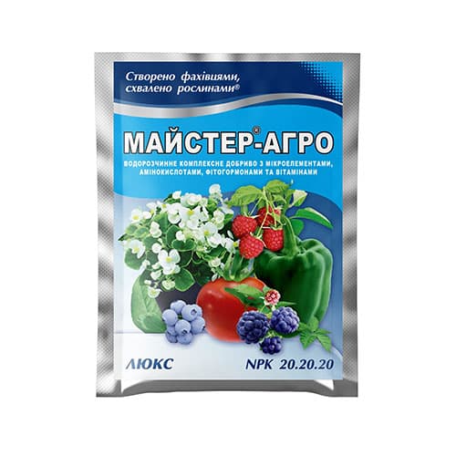 Эффективное водорастворимое, безхлорное комплексное удобрение с микроэлементами в форме хелатов. Применяется для корневой подкормки всех видов овощей, цветов, винограда и рассады. Состав удобрения: азот (N) - 20%, фосфор (P2O5) - 20%, калий (K2O) - 20%, B, Cu, Zn, Mn, Fe, Mo.