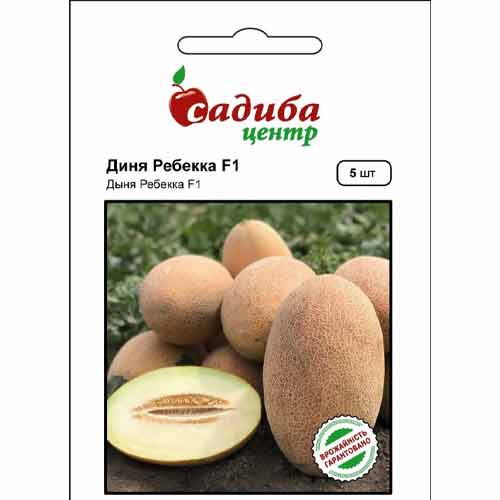 Дыня Ребекка F1 – ранний и высокоурожайный гибрид типа «Итальянская сетчатая». Плоды шаровидные, немного удлиненные, разделены на сегменты. Средняя масса достигает 1,6-2,3 кг. Мякоть оранжевая, нежная и сочная, имеет выраженный характерный аромат и замечательный сладкий вкус. Плоды употребляют в свежем виде. Транспортируют без повреждений.