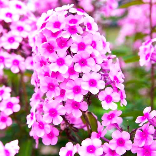 Благодаря своей декоративности флокс используют в групповых и одиночных посадках, в букетной срезке. Замечательно смотрится в рокариях, миксбордерах и альпийских горках, на фоне изумрудного газона. Хорош в композициях с садовыми цветами – рудбекией, гвоздиками, колокольчиками и аквилегией. Закажите саженцы метельчатого флокса Мисс Пеппер – цветок прекрасен в букетной срезке, долго не вянет. Колоритный цветок идеален для роли центрального элемента в композициях.