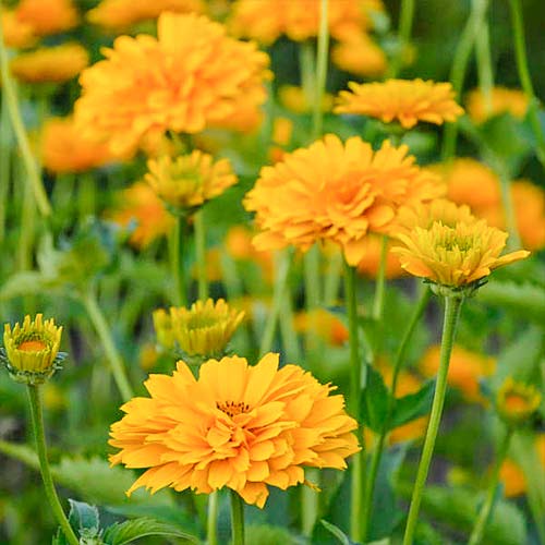 Гелиопсис Саммер Сан - невероятно яркий желтый цветок, который напоминает подсолнух в миниатюре. Его пышные кусты достигают в высоту 1,5 - 1,6 м. Темно-зеленые листья эффектно контрастируют с насыщенной, "солнечной" окраской цветов. Хорошо подходит для создания букетов благодаря крепким цветоносам, долго хранит свежесть после среза.