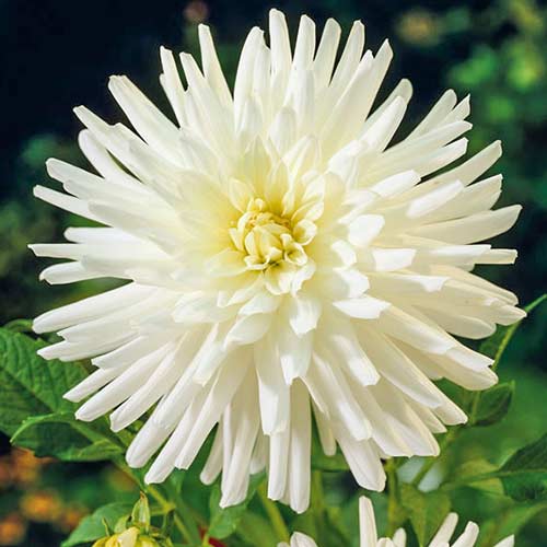 Георгина Плайя Бланка — низкорослый бордюрный сорт с игольчатыми цветами диаметром 10−12 см. Лепестки чисто белые с лимонно-желтой «подсветкой» у сердцевины. Стебли толстые и прочные. На побегах образуется 2−3 цветка. Ярко-зеленые листья в сочетании с белыми цветами создают идеально гармоничную композицию.