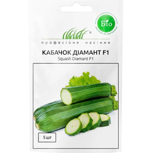 Кабачок Бриллиант F1 — кустовой сорт с темно-зелеными плодами. Раннеспелый, высокоурожайный, одновременно завязывает несколько кабачков. Плод цилиндрический массой до 1 кг, с резко выраженными гранями и слаборазвитыми семенами.