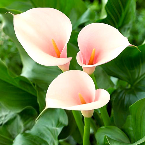 Калла (белокрыльник) Фламинго — исключительно привлекательный сорт эфиопских калл. Высота безлистого цветоноса — 50 см. Листья у растения крупные слегка вытянутые, нежно-изумрудного оттенка. Соцветие окутано покрывалом розово-пудрового оттенка высотой 10 см. Продолжительность цветения 6-7 месяцев.