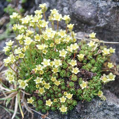 Камнеломка Клот оф Голд – чудесный почвопокровник, который идеально подойдет для альпийских и каменистых горок, ковровых дорожек. Его высота достигает всего 4-8 см, зато диаметр может быть 10-20 см. Листва мелкая, зубчатая, собрана в небольшие розетки, за счет сильной ветвистости культура формирует сплошной густой ковер. На контрасте с зеленью особенно эффектно выглядят ванильные бутоны, которые появляются на длинных тонких цветоносах в конце весны – начале лета.