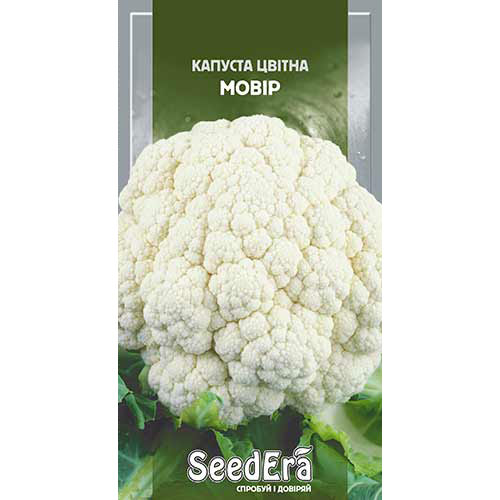 Капуста цветная Мовир - среднеранний, высокоурожайный сорт капусты. От всходов до начала сборки 70 - 96 дней, до массовой уборки 80 - 115 дней. Головка имеет плоско-округлую форму, белого цвета, реже бело-желтого оттенка, очень плотная. Поверхность кочана слабо бугристая и мелко-зернистая. Сорт требует затенения. Вес головок 0,6 - 1,4 кг. Урожайность - 0,9 - 3,9 кг/м.