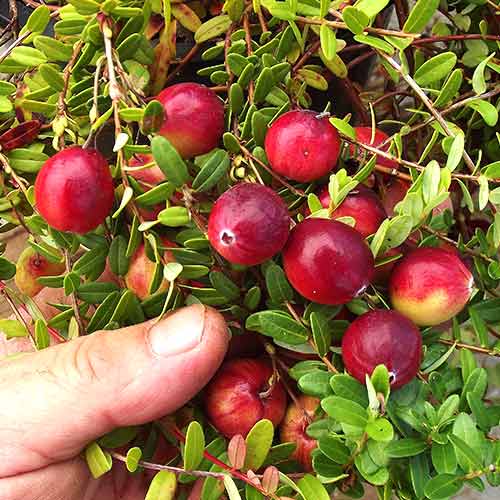 Крупные розовые или красные ягоды клюквы Стивенс созревают в конце сентября. Они отличаются кисло-сладким вкусом. Собирать такую клюкву легко, так как ягоды очень крупные, до 2 см в диаметре.