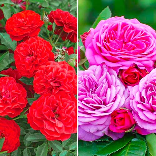 В данный комплект входят розы почвопокровная Биг Бэнг и флорибунда Хайди Клум. На них вырастает обилие цветов, в красивейших формах бутонов.
