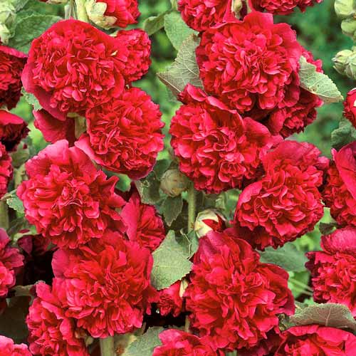 Мальва (шток-роза) махровая Ред — красный сорт с многочисленными густо махровыми цветками и прямостоячем стебле высотой 1 метр и более. В сочетании с махровыми сортами других расцветок образует потрясающие по красоте групповые посадки, которые на протяжении многих лет не теряют декоративности. Цветение начинается в июне и благодаря многочисленным бутонам продолжается до сентября. Зимует в грунте без укрытия, требует минимального ухода.