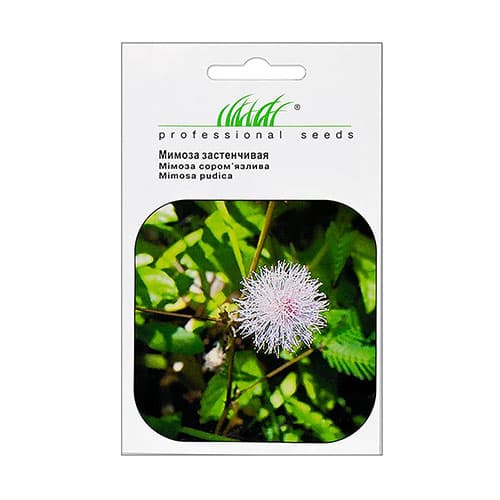 Мимоза застенчивая - многолетнее травянистое растение, высотой 30-40 см. Цветы в виде шаровидных пушистых соцветий, диаметром около 2 см, лилово-розовой окраски, украшают растение с июня до сентября. Мимоза очень чувствительна к механическим повреждениям, при малейшем прикосновении опускает веточки и скручивает свои листочки. Выращивается посевом семян в горшки в феврале - апреле, на постоянное место растение пересаживают в мае-июне. Предпочитает теплые помещения, интенсивное освещения и повышенную влажность воздуха. Требует регулярных поливов. Используется для украшения комнатных и садовых вазонов.