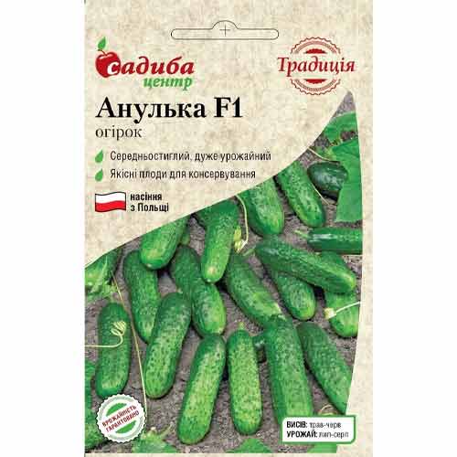 Огурец Анулька F1 – гибрид корнишонного типа. Первые огурчики созревают уже на 56 день. Длина пупырчатых плодов достигает лишь 7-8 см. Кожура окрашена в светло-зеленый цвет. Она легко поддается очистке и имеет нейтральный вкус без горчинки. Сорт широко используется для приготовления хрустящей консервации, летних витаминных салатов.