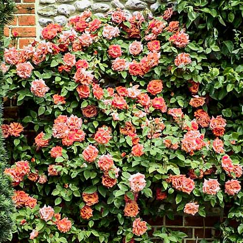 Высота куста плетистой розы Алоха достигает 300 см. Диаметр цветка до 10 см. Они ароматные, махровые, абрикосового цвета, разбавленного темно-розовыми оттенками. С обратной стороны лепестки более темные. Листья глянцевые, яркого зеленого окраса. Цветение продолжительное и обильное. В одном соцветии может быть до 10 бутонов. Онирасцветают дважды: в июле и в августе. Купите саженцы плетистой розы Алоха в интернет-магазине «GradinaMax» и наслаждайтесь видом замечательной живой изгороди.