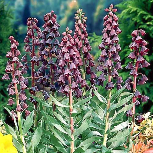 Рябчик (фритиллярия) Персика — уникальный и единственный представитель группы Theresia (монотипный род). При хорошем уходе растение достигает 1 метра в высоту. Листья имеют голубовато-сизый окрас. Весной растение образует крупный вертикальный конус, состоящий из множества пурпурно-черных колокольчиков. Число цветков в кисти варьируется от 30 до 40, на плодородных почвах достигает 50.