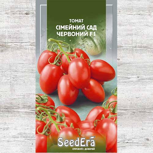 Томат Семейный Сад красный F1 - среднеранний, детерминантный, высокоурожайный гибрид томата. Срок созревания 90 - 95 дней. Для выращивания в теплице и открытом грунте. Плоды у томатов в форме сливы, красного цвета, выровненные, крепкие. Вес плодов 60 - 70 г. Вкус сладкий, помидорный. Отличается отличной лежкостью и транспортабельностью. Используют в свежем виде, в соках и консервировании.