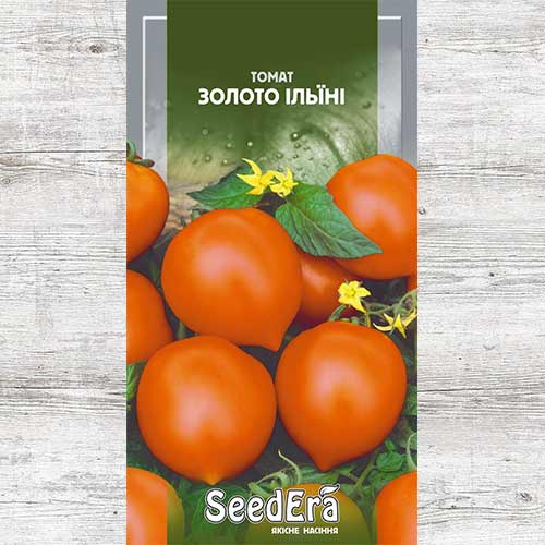 Томат Золото Илини - среднеранний очень урожайный гибрид высотой до 1,8 метра. Обладает красивыми овальными плодами. Большинство из них имеют носики, плотные с оранжевым окрасом. Высоко ценится за свою устойчивость к заболеваниям. Идеальный вариант для салатов и консерваций.