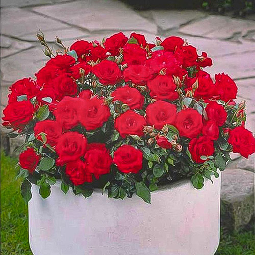 Роза Спрей Рандилла Руд – это миниатюрное растение с множеством ярких цветов. Максимальная высота куста – 40 см, а цветки получаются крупными, могут достигать в диаметре до 10 см. Соцветия имеют махровое строение и окрашены в ярко-красные оттенки. Бутоны в вытянутой форме. На одном ответвлении вырастают 9 и более роз. Зелёная масса густая, листья формируются обильно. Цветение продолжительное.