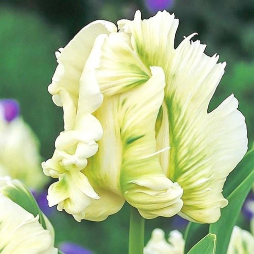 Тюльпан попугайный Супер Пэррот - отличается сильно волнистыми и зазубренными лепестками бело-кремового цвета с зелеными крапинками. Они обманчиво похожи на перья экзотических попугаев или других райских птиц. Цветут поздней весной, в конце апреля и начале мая. Они красиво смотрятся в больших группах вместе с другими тюльпанами-попугаями, махровыми или одиночными классической формы. Размещать их лучше всего на многовидовой клумбе, цветнике, газоне или рокарии. При правильном дренаже они могут расти и в горшках. Цветы очень прочные, поэтому их можно срезать для букетов.
