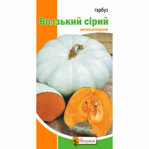 Тыква Волжская серая - крупноплодная бахчевая культура с весом зрелых плодов до 9 кг. Данный сорт благодаря своей кожуре очень хорошо хранится, не подвергается гниению (даже на влажной земле). Плоды при хранении имеют свойства накапливать полезные вещества - повышается содержание сахара до 11%, каротина до 7,8%, витамина С до 15 мг.