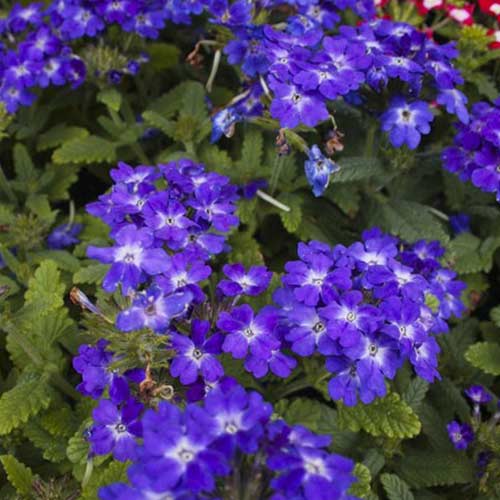 Вербена Кварц XP F1 синяя - ранний эффектный цветок с насыщенным окрасом и пышными соцветиями. Кусты низкорослые, с удлиненными заостренными листьями. Это тропическое растение, хорошо переносит засуху, прямые солнечные лучи, и приспосабливается к различным типам почвы. В наших широтах вербену выращивают как однолетник. Она привлекательно выглядит на клумбах, где образует сплошной ковер, а отдельные кусты хорошо растут в вазонах, балконных ящиках и кашпо.
