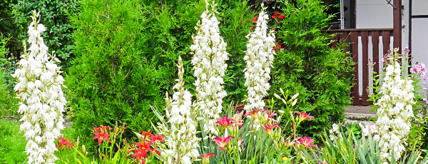 Якщо ви хочете створити в саду тропічний острівець, кличте на допомогу Юку! Цей ошатний вічнозелений кущ легко пристосовується до навколишніх умов і вимагає мінімального догляду. Ще одна вагома причина поселити його на своїй ділянці — повір'я, згідно з яким екзотична багаторічна рослина дарує власникові щастя та добробут.