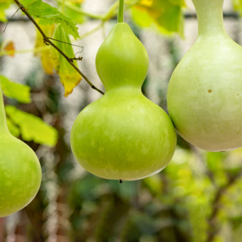 Лагенарія – дивовижна рослина сімейства гарбузових. Плід овальної або грушоподібної форми вагою 0,5-1,5 кг. У цього яскравого представника сімейства гарбузових є багато інших назв: в'єтнамський кабачок, пляшковий гарбуз, індійський огірок, Калабас, Горлянка. Представляє собою трав'янисту повзучу ліану, довжина якої може досягати 15 метрів. Купуйте насіння лагенарії і виростіть у себе на ділянці плоди оригінальної форми, які можна використовувати: