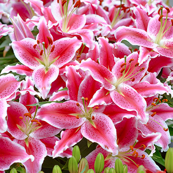 - Суміш забарвлень з 6 цибулин. Східні лілії висотою 100-150 см з махровими квітками: білосніжна Полар Стар, ніжно-рожева з червоними крапками Брокен Харт і малиново-біла Меджік Стар.