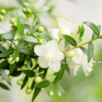 Цей вічнозелений чагарник служить символом вдалого шлюбу, тому його часто дарують нареченим на весілля. Його назва перекладається як «бальзам» – люди з давніх-давен цінували його за лікувальні властивості. Квітки й листя виділяють фітонциди, багаті ефірними маслами. Для зниження частоти застуд у дитини його ставлять в дитячій кімнаті, також існує думка, що мірт допомагає впоратися з алергією. Рослина добре переносить обрізку, тому кроні можна надати будь-яку бажану форму.