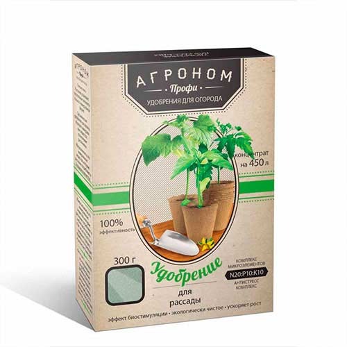 Агроном Профі для розсади – майже ідеальний комплекс, який прискорює дозрівання плодів, робить їх більше та смачніше. Повністю забезпечує рослини всіма необхідними речовинами, може використовуватися при будь-яких системах поливу – як інноваційних, так і традиційних. Рослини менше хворіють, краще переносять стрес від використання гербіцидів, врожайність підвищується в 1,5-2 рази. Повністю розчиняється навіть в холодній воді.
