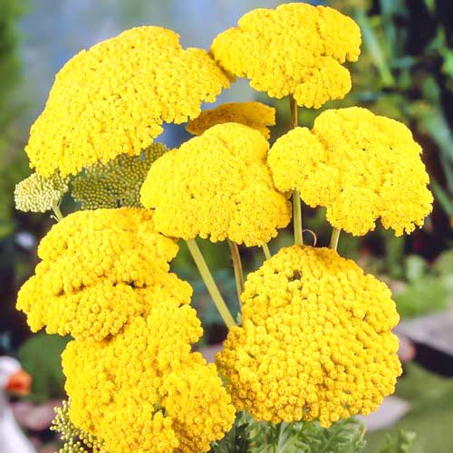 Ахіллея (деревій звичайний) Голден Фліс – чарівна багаторічна культура з сонячно-жовтими суцвіттями, які складаються з крихітних бутончиків. Розпускаються вони в червні – липні. На контрасті з ними яскраво виділяється ажурна дрібна зелень темно-хризолітового кольору. Квітка не росте вище 30 см. Рослина відмінно підійде для прикраси альпійських гірок, її можна зрізати й додавати в композиції з сухих квітів.