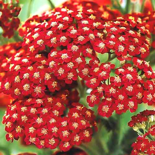 Ахілея (деревій звичайний) Шері Квін – нарядний багаторічник від 50 до 70 см заввишки. З липня по вересень на ньому розпускаються дрібненькі вишнево-червоні квіточки, прикрашені контрастною світлою серединкою. Бутони зібрані в щільні суцвіття-зонтики. Листя зелене, глибоко порізане, ажурне. Культура добре виглядає в бордюрних посадках та рабатках. Її зрізують для створення букетів із сухих квітів.