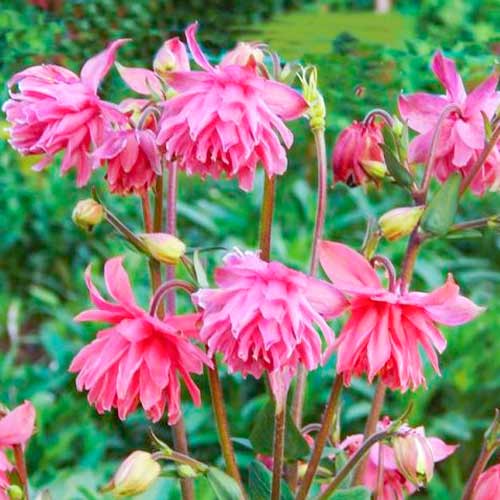Аквілегія Пінк - гібридний сорт з красивими ніжно-рожевими махровими квітками. Кущик виростає в середньому до 60 сантиметрів. Одна рослина на початку червня випускає від 2 до 10 прямостоячих квітконосів, на кожному з яких розвивається по кілька бутонів. Квітки розпускаються послідовно і цвіте тривалий час. Після закінчення цвітіння квітконоси рекомендується зрізати. Аквілегія Пінк характеризується високим імунітетом, гарною зимостійкістю і невибагливістю у догляді.