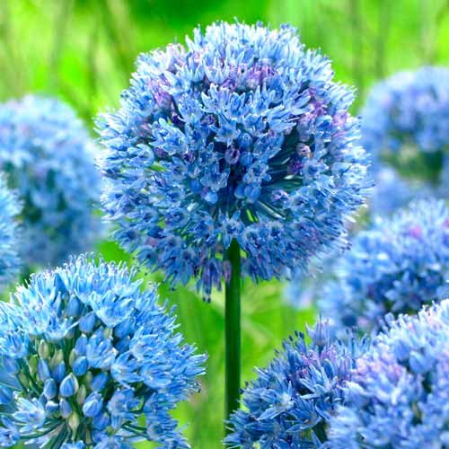 Алліум Голубий – цибулинний багаторічник заввишки 40-65 см. Його блакитні кулі-суцвіття відтінку весняного неба будуть чудово виглядати в рокаріях, рабатках і міксбордерах. Розпускається декоративна цибуля в червні. На початку вегетативного періоду листочки рослини їстівні, але з часом вони грубіють і починають гірчити. Якщо ви хочете отримати посадковий матеріал преміум-класу, з якого виходять великі та стійкі культури, купуйте цибулини алліума Голубого у нашому інтернет-магазині.
