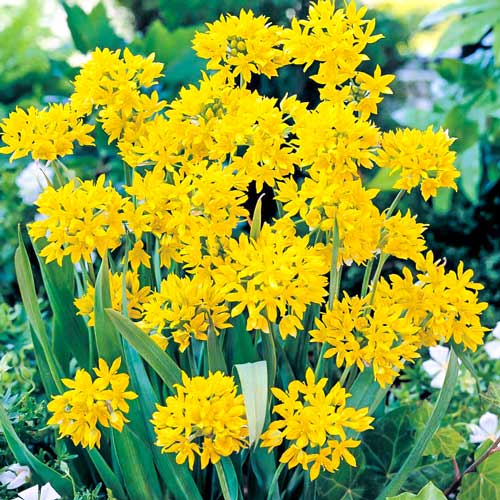 Аллиум Моли — это разновидность селекционного декоративного лука. Мелкие ароматные цветки собраны в пышные соцветия диаметром до 8 см. Цвет лепестков — лимонно-желтый. Форма — заостренная, звездчатая. Яркие солнечные соцветия сохраняют декоративность до глубокой осени и нередко используются флористами в качестве сухоцветов.
