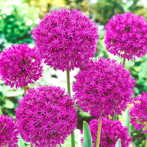 Алліум Перпл Сенсейшн - одна з найбільших цибулин, із суцвіттями діаметром до 10 см. Пурпуровий колір темніє до майже фіолетового, в процесі цвітіння. Придатна для зрізання і сухих букетів, квіти приваблюють безліч бджіл і джмелів. Висота дорослої рослини - до 90 см.