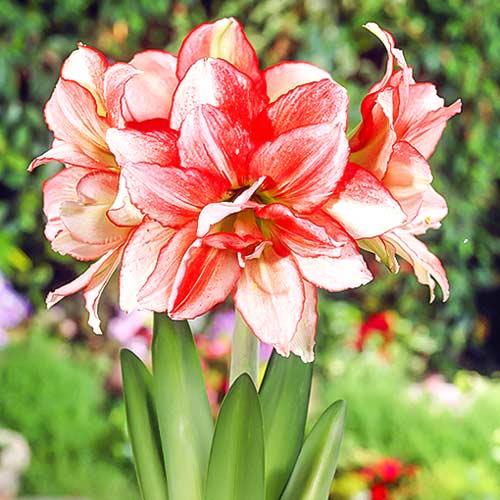 Амариліс (гіпеаструм) махровий Дабл Рекорд - це квітка з акварельним забарвленням пелюсток у біло-рожевих тонах, що має невимовну витонченість. Махрові квіти призначені для вирощування в горщиках - під час цвітіння гіпеаструм служить кращою прикрасою житлових і громадських приміщень. У садові композиції амариліс включають найчастіше в контейнерах, рослину можна висаджувати у відкритий ґрунт, але з настанням холодної погоди необхідно викопувати цибулини і зберігати їх у приміщенні.