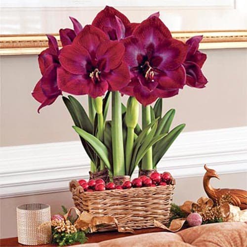 Амариліс (гіпеаструм) Гранд Діва - Один з найкращих нових сортів. Великі оксамитові квітки кольору благородного червоного вина приковують погляд. листя широке, довге, щільне, відростає з центру великої цибулини. Висота рослини - до 50 см.