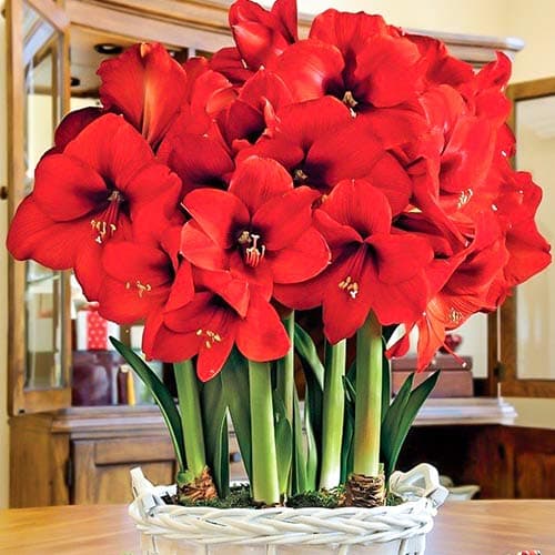 Амариліс Парк Ред – рослина з великими квітками у вигляді насичено-червоних оксамитових дзвіночків. На одному квітконосі може розвиватися до 12 чудових бутонів, що досягають 15 см в діаметрі. Купіть цибулини амариліса (гіпеаструма) Парк Ред та прикрасьте приміщення витонченими та вишуканими рослинами.