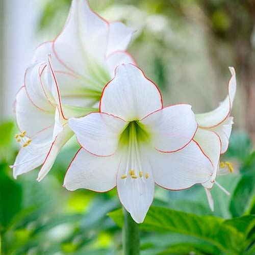 Пікоті – чудова горшкова рослина з красивими бутонами і дуже витонченим ароматом. Квітки великі, розміром близько 20 см. На одному квітконосі формується 5-7 суцвіть. Купіть цибулини амариліса (гіпеаструма) Пікоті і два рази в рік насолоджуйтеся цвітінням прекрасної квітки з білими пелюстками, обрамленими найтоншої малиновою облямівкою.
