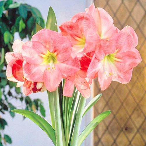 Амариліс (гіпеаструм) Сюзан - квітки цього сорту прекрасні, як юна дівчина. На одному квітконосі висотою 50 см формується до 5 бутонів з темно-рожевими пелюстками. Квітка з жовтою серединкою досягає діаметра близько 18 см. Листя світло-зелене, подовжене. За правильного догляду рослина може цвісти кілька разів на рік. Її можна вирощувати у квітковому горщику на підвіконні, в контейнері на балконі або терасі. Квітки використовуються на зрізання в букети.