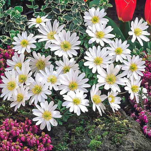 Анемона Бланда Вайт Сплендор – невисокий чагарник (до 20 см) з ніжними білосніжними квітками, які чудово виглядають серед інших яскравих культур, наприклад, примул. Це відмінний вибір для висадки не тільки на клумбі, але і в міксбордері. Купіть посадковий матеріал у магазині «GradinaMax» – з року в рік рослина буде розростатися все швидше і швидше, утворюючи декоративний килим.