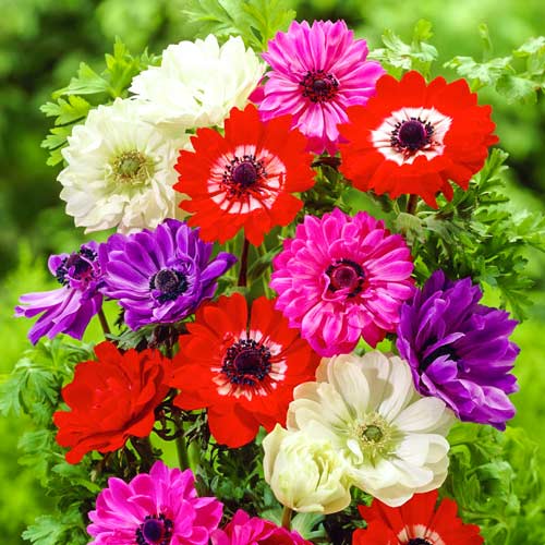 Анемона махрова Сант Бріджит (Anemone Double St. Brigid Mixed) – мікс забарвлень з декількох сортів корончатого виду з дуже великими квітками, що досягають 10 см в діаметрі. У період цвітіння кожне стебло перетворюється на одиночний квітконос висотою близько 25 см, що робить рослину придатною для зрізання. Цвіте з червня по вересень, після чого наступає час спокою. Зимує в ґрунті. Сорт підходить для вирощування у горщиках і контейнерах, в якості кімнатної квітки або інтер'єрної композиції.