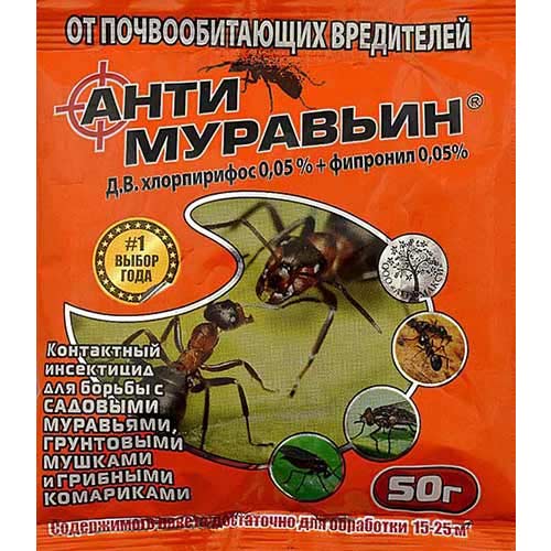 Антимурав’їн Універсальний – засіб, який чудово справляється з садовими мурахами як на грядках, так і в теплицях. Також його можна використовувати для боротьби з ґрунтовими мошками. Препарат зазвичай розсипають по поверхні і прикривають тонким шаром землі або фанерою, руберойдом і т.п. Комахи-шкідники гинуть на 3-5 день, а дія препарату триває понад 3 місяці.