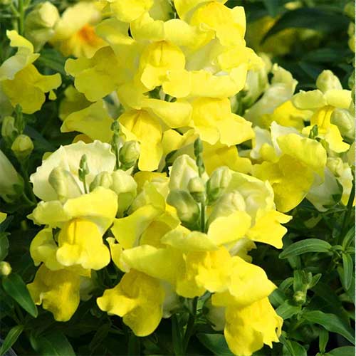 Антірінум Снеппі жовтий F1 – дуже компактний однорічний сорт, висота якого складає 20-25 см, а ширина – 15-20 см. Дрібні напівмахрові квіти зібрані у суцвіття розміром 8-10 см. Зацвітають вони майже одночасно у червні. Рослиною прикрашають балкони та садові бордюри, розміщують на клумбах, бордюрах, передньому плані квітників. Поєднують із айстрами, чорнобривцями та сальвією.